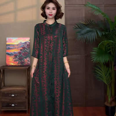 中年妈妈夏装气质连衣裙新中式改良旗袍夏季中老年高级感长裙子女130元淘宝135元