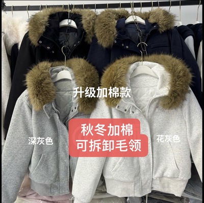 美式高街大毛领可拆卸连帽卫衣外套女加棉加厚秋冬季宽松短款上衣99.99元淘宝113.99元