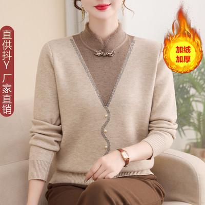 2025新款旗袍领假两件针织衫套装56元淘宝66元