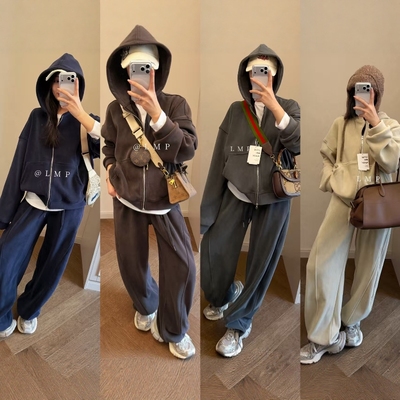 LMP松弛感490g奥利绒秋冬女加绒加厚连帽外套休闲长裤套装两件套135元淘宝140元