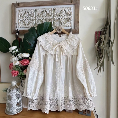 宽松甜美系带长袖纯棉蕾丝上衣女143元淘宝148元