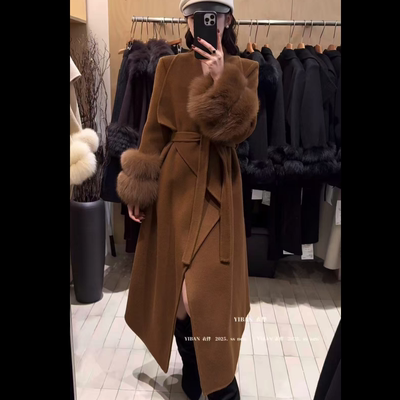 韩版时尚长款大翻领双面羊毛大衣548元淘宝598元