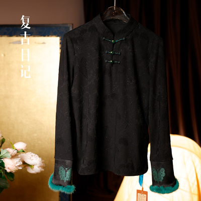 复古日记“清梅蝶影”上久楷黑绿蝴蝶丝羊毛水貂针织T恤2E7T6842289元天猫299元