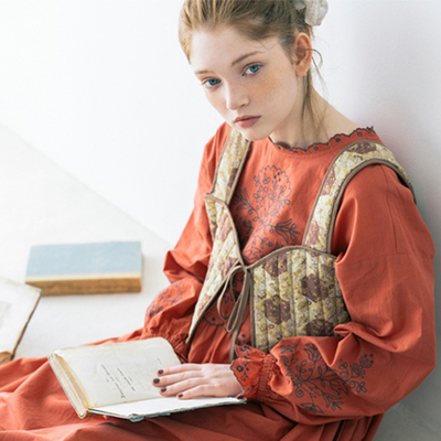 日本sm2秋季画册款 精美刺绣宽松连衣裙日系棉麻森林系袍子OP女装123元淘宝128元