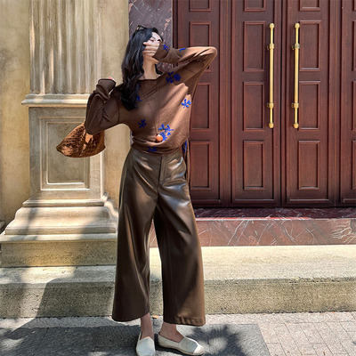 THE MENG【超比例】超纤蛋白皮极简通勤阔腿休闲裤279元天猫289元