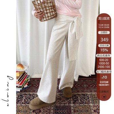 Elwing原创时髦假两件绑带设计阔腿宽松软糯绒感卫裤339元淘宝349元