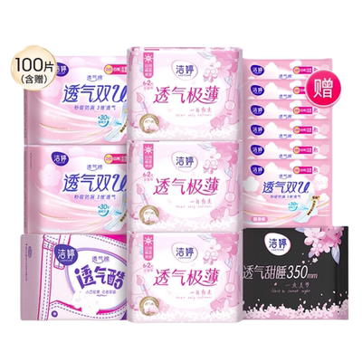 洁婷樱花透气超薄日夜组合卫生巾姨妈巾官方正品A39.8元天猫63.8元
