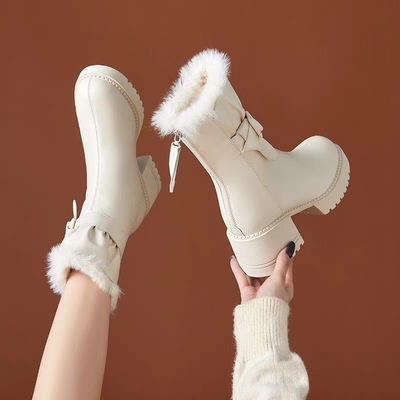 雪地靴女2025新款中筒马丁靴秋冬季加绒加厚保暖棉鞋冬鞋白色棉靴59.9元淘宝69.9元
