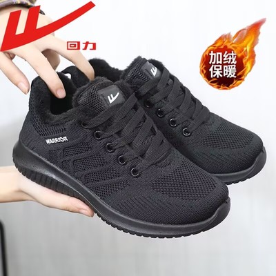 回力棉鞋女冬季加绒加厚保暖鞋全黑防滑工作鞋妈妈鞋低帮休闲鞋女64.9元淘宝69.9元