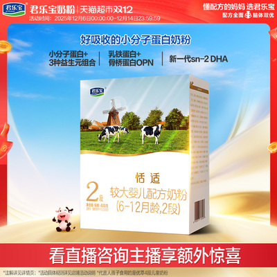 君乐宝2段较大幼儿配方奶粉400g45元天猫60元