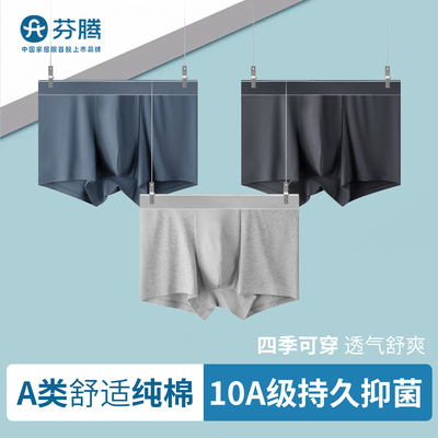 芬腾男士内裤男款纯棉10A抗菌平角透气男式四角短裤全棉正品新款13元淘宝29元