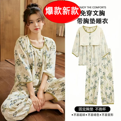 睡衣女带胸垫夏季甜美七分袖宽松69元淘宝99元