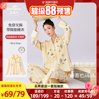睡衣女款春秋季带胸垫长袖69元天猫189元