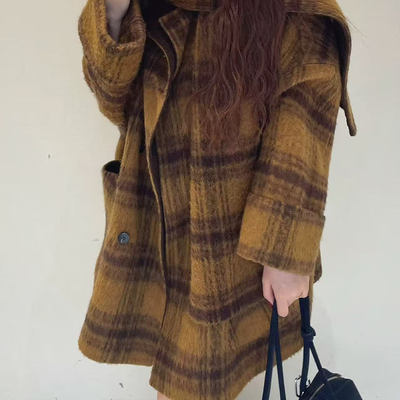羊驼毛2025秋冬女款新品高级感围巾格子款中长款双面大衣468元淘宝2888元