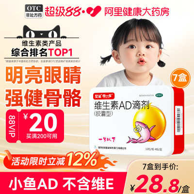 【自营】【星鲨】维生素AD滴剂(胶囊型)1500IU500IU*48粒/盒预防治疗夜盲症佝偻病补充营养78元天猫82元