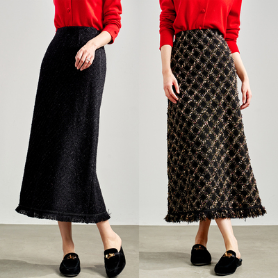 星辰闪烁【羊毛斜纹花呢/金葱/真丝里】法奢斜裁鱼尾手工流苏半裙540元淘宝550元