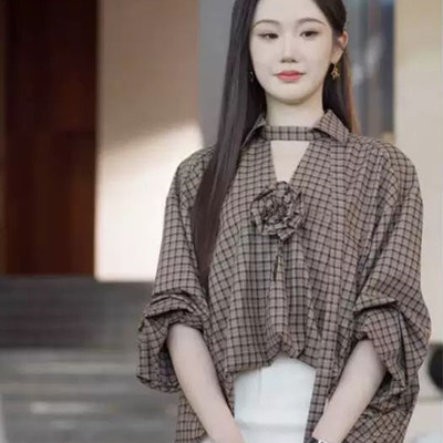 许薇同款咖色小格子衬衫设计感136元淘宝138元