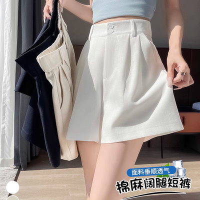 白色短裤冰丝亚麻a字阔腿裤女夏2025新款今年流行爆款工装裤潮75元淘宝96元
