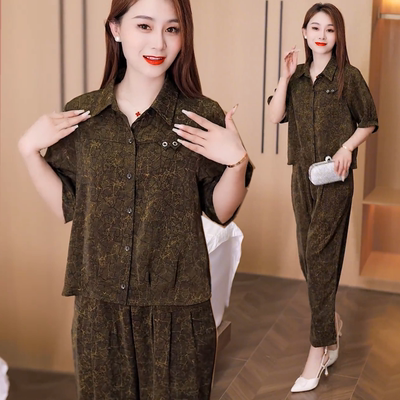 2025新款时尚翻领短袖衬衫9分裤39.9元淘宝49.9元