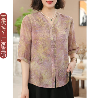 2025新款碎花雪纺衫上衣V领衬衣39.9元淘宝49.9元