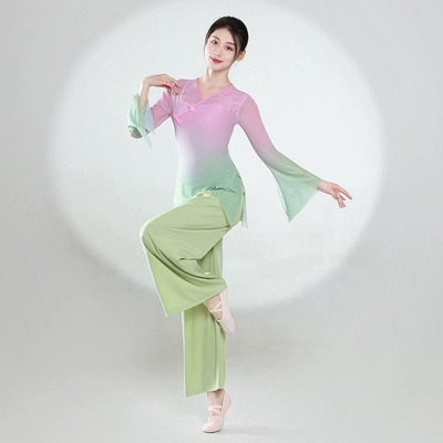 古典舞弹力纱衣渐变身韵舞蹈练功服中国舞艺考上衣民族舞演出服女35元淘宝39元