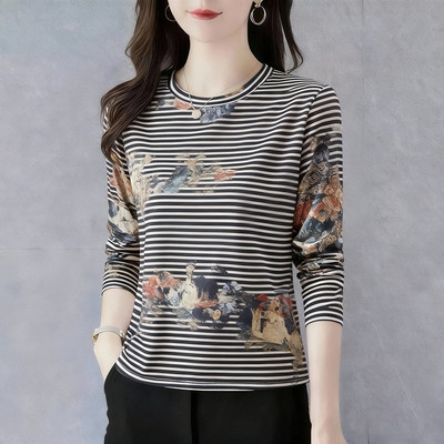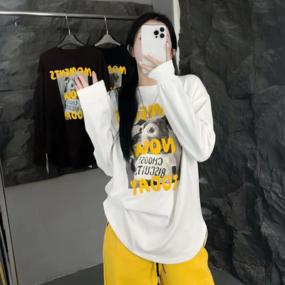 清仓捡漏~时髦圆领长袖打底衫女2025春秋新款遮肚子大花T恤上衣6.8元淘宝17.8元