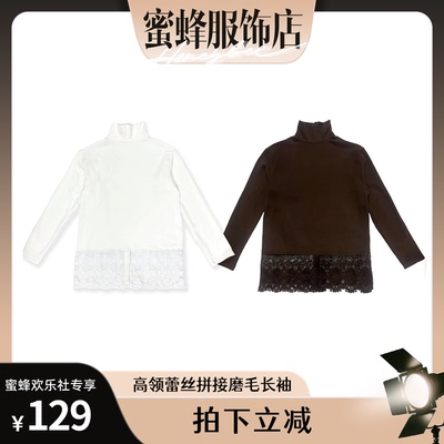 miu系蕾丝下摆半高领长袖打底衫129元淘宝329元