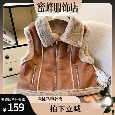 2025新款韩版麂皮绒羊羔绒马甲加厚保暖159元淘宝399元