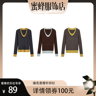 【蜜蜂欢乐社】二茵ERYIN秋冬新款撞色假两件显瘦针织衫89元淘宝189元