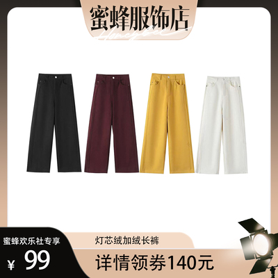 【蜜蜂欢乐社】二茵ERYIN秋冬新款女士厚款灯芯绒阔版加绒直筒裤99元淘宝239元