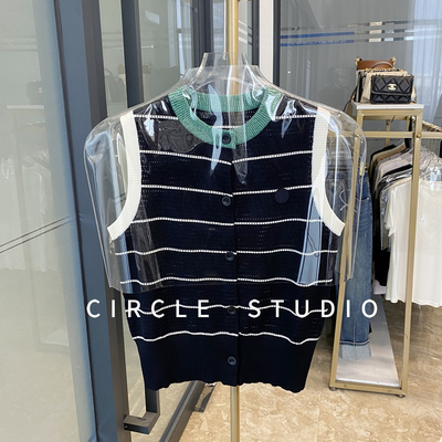 小众设计感笑脸条纹镂空马甲背心收腰无袖短款时髦撞色针织衫女178元淘宝188元