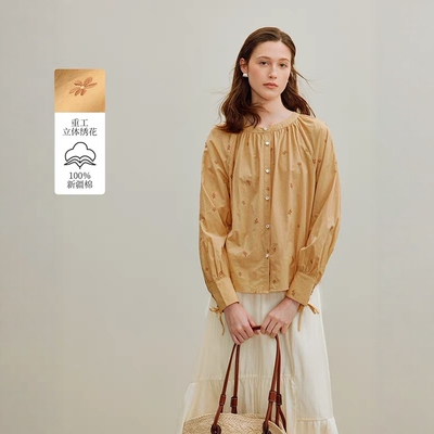 茵蔓法式复古绑带刺绣碎花衬衫女2025年秋新款休闲纯棉长袖衬衣84.9元淘宝89.9元