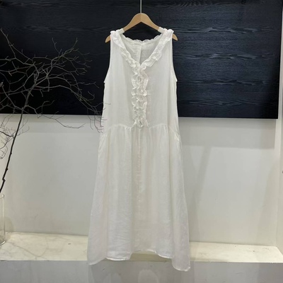 实拍苎麻V领木耳拼接背心裙气质159元淘宝169元