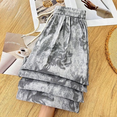 复古慵懒灰色印花冰丝裤子女夏薄款抽绳阔腿裤高腰休闲防蚊防晒17.8元淘宝18.8元