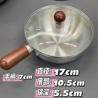 fz新款木柄可爱INS风格带玻璃盖不锈钢宿舍家用平底小汤锅泡面锅13.9元淘宝20.9元