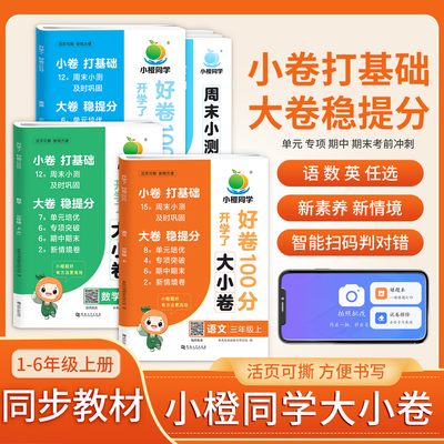小橙同学周末小测卷大小卷一 二 三年级四五六年级上册语文数学英语小学试卷测试卷培优检测配套人教版同步练习册单元期中期末卷子6.8元天猫12.8元