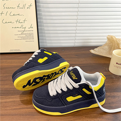 易少年 深蓝黄面包鞋女ins潮2025冬季新款板鞋小众百搭休闲小白鞋69.9元淘宝82.9元