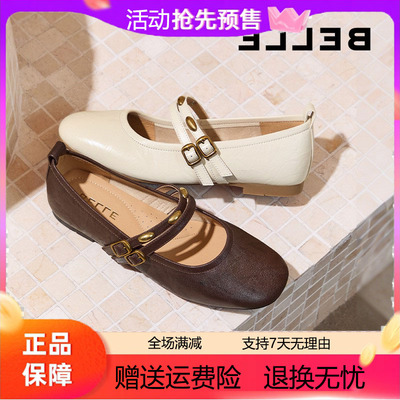 百丽2025新款圆舞曲羊皮褶皱玛丽珍鞋女复古软底浅口单鞋D9V1DCQ5219元淘宝449元