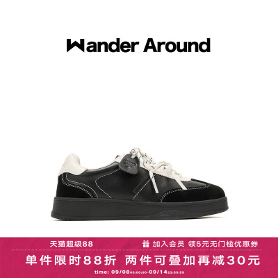 Wander around2025新款黑白拼色厚底增高休闲板鞋复古德训鞋女429元天猫699元
