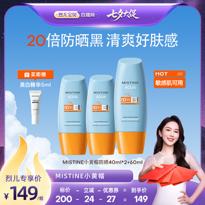 【 烈儿宝贝直播间】Mistine小黄帽防40ml*2+60ml*1spf50+173元天猫200元
