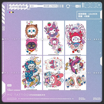 个性涂鸦软萌彩色卡通纹身贴套装4.13元淘宝8.13元