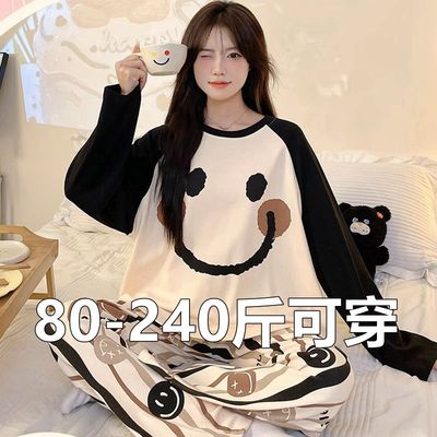 春秋季女长袖大码200斤睡衣套装13.8元淘宝23.8元
