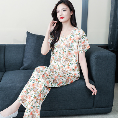 中年妈妈夏季短袖棉绸女士睡衣29.8元天猫49.8元