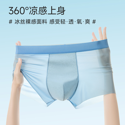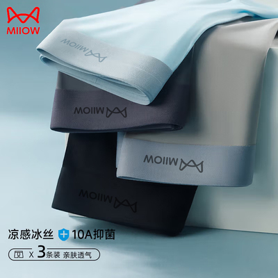 MiiOW/猫人男士冰丝内裤无痕裤衩网孔透气空调裤夏季冰凉内裤速干29.9元天猫49.9元