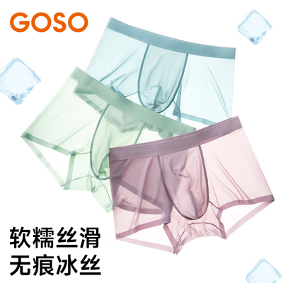 GOSO冰丝无痕男士内裤2025新款超薄透气抑菌裆平角裤裸感男四角裤59.9元天猫99.9元