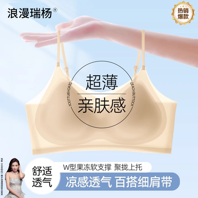 浪漫瑞杨内衣女细肩带无痕夏季薄款大胸显小胸聚拢冰丝无钢圈文胸12.8元天猫19.8元