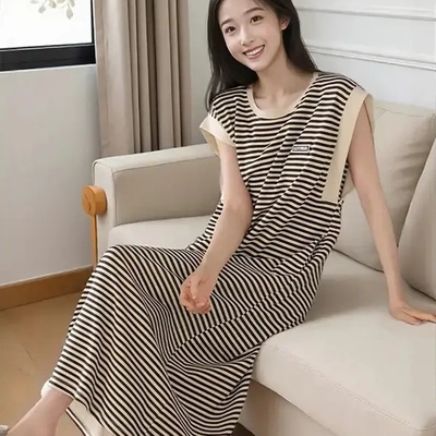 夏季带胸垫睡衣女新款背心裙条纹印花大码外穿女士家居睡裙薄款tt89.9元淘宝139.9元