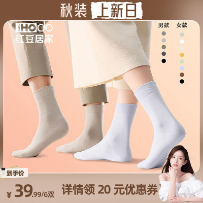 【晁然推荐】红豆居家6双装吸汗透气橡筋款色纺抗菌防臭中筒袜39.99元天猫59.99元