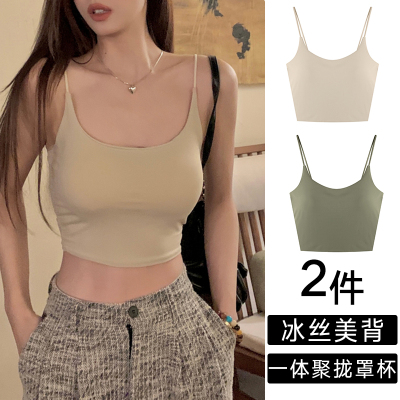 韩版冰丝无痕美背吊带背心带胸垫13.9元淘宝18.9元