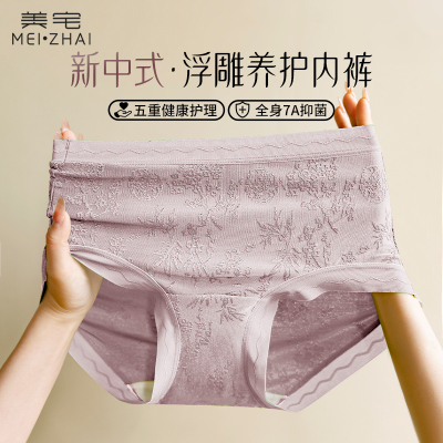 美宅国风浮雕养护内裤女生2025新款蚕丝加长裆冰丝不夹臀三角短裤39.99元淘宝49.99元